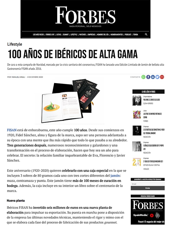 FISAN / Blog / Actualidad / Publicaciones / 100 años de ibéricos de alta gama
