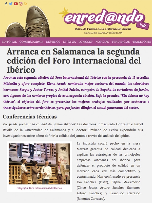 Arranca esta segunda edición del Foro Internacional del Ibérico con la presencia de 15 estrellas Michelín y aforo completo. Elena Arzak, nombrada mejor cocinera del mundo, los televisivos hermanos Sergio y Javier Torres, y Aníbal Falcón, campeón de España de cortadores de jamón, son algunos de los nombres propios de esta segunda edición. Bajo la premisa “Sin dehesa no hay ibérico”, el objetivo del foro es presentar los mejores trabajos realizados por cocineros e investigadores sobre cerdo ibérico, para que juntos dibujen el actual panorama del sector.