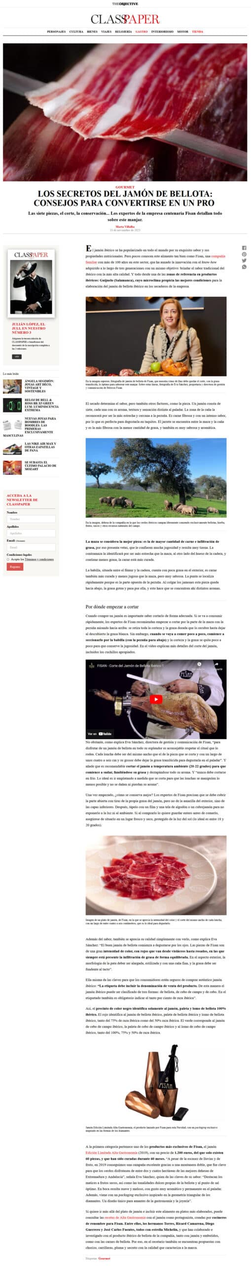 Classpaper, la gran revista en papel del lujo culto, una cabecera única y diferente para una élite con background cultural le ha dedicado un extenso artículo otro producto exclusivo: el inimitable Jamón de Bellota de FISAN.