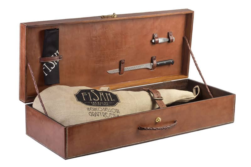Este año, además, nuestra edición Limitada se presenta en un formato único para la ocasión, como ya esperamos cada temporada. Una elegante caja de diseño exclusivo con los complementos imprescindibles para disfrutarlo: cuchillo jamonero, mandil de corte y pinzas.