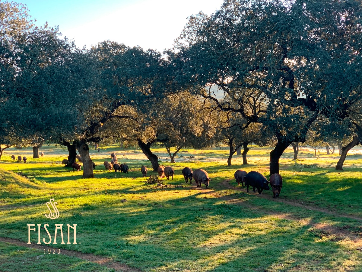 Situadas en Cáceres, Badajoz, Sierra Norte de Sevilla, Huelva y Córdoba, y gestionadas directamente por FISAN, son muy fruteras y de excepcional calidad todos los años. Además, el número de animales que campan por nuestras dehesas está muy por debajo del máximo establecido por ley, lo cual se traduce en que nuestros cerdos ibéricos pueden alimentarse como si hubieran disfrutado de una doble montanera.