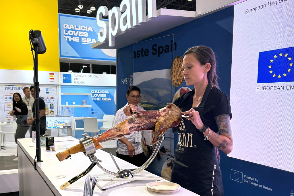 Además, en colaboración con el ICEX, hemos liderado sesiones formativas en el pabellón español, destacando los valores diferenciales del Jamón de Bellota 100% Ibérico. Con estas iniciativas, reafirmamos nuestro compromiso con la excelencia y la difusión de la cultura culinaria española en mercados internacionales clave como Estados Unidos. Estas acciones refuerzan nuestro papel como líder en la promoción y expansión de los productos ibéricos de bellota a nivel internacional, consolidando el reconocimiento global de la gastronomía española.