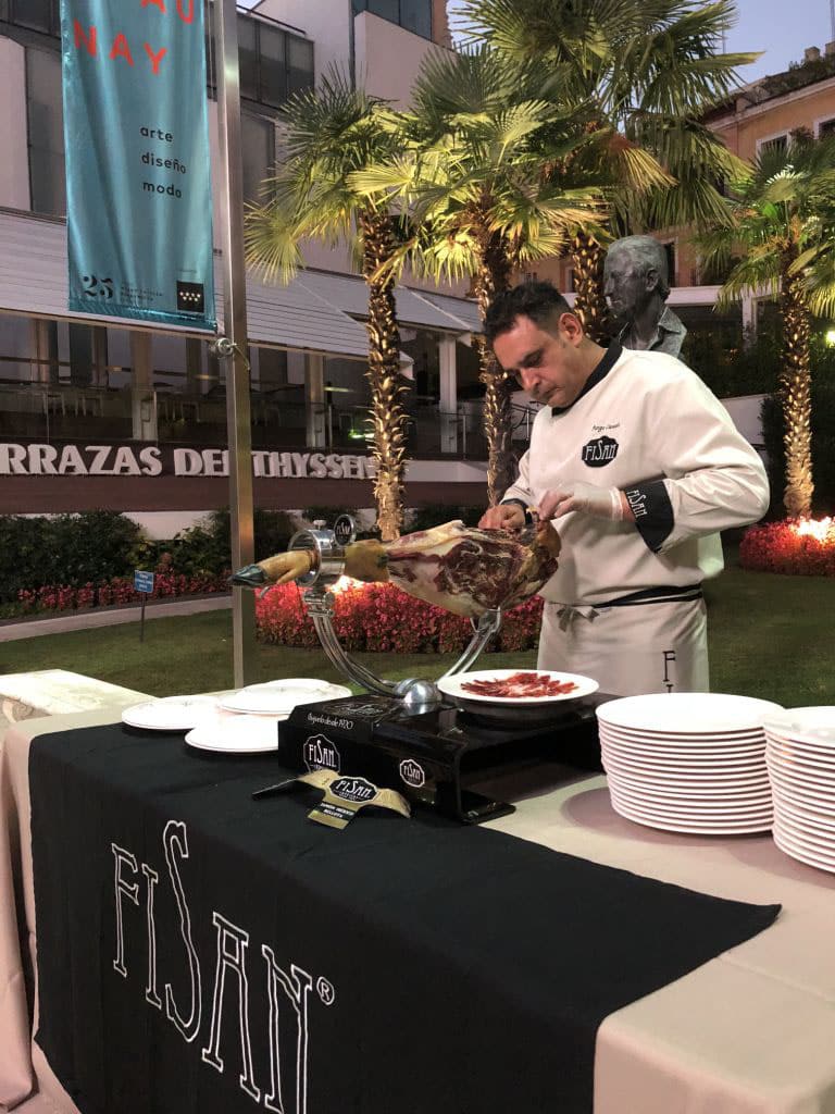 Tras la subasta benéfica, llevada a cabo por el equipo de Christie´s, se sirvió un cóctel ofrecido por Medems que contó con dos de los maestros cortadores de FISAN que deleitaron al público dos de sus jamones GRAN RESERVA.