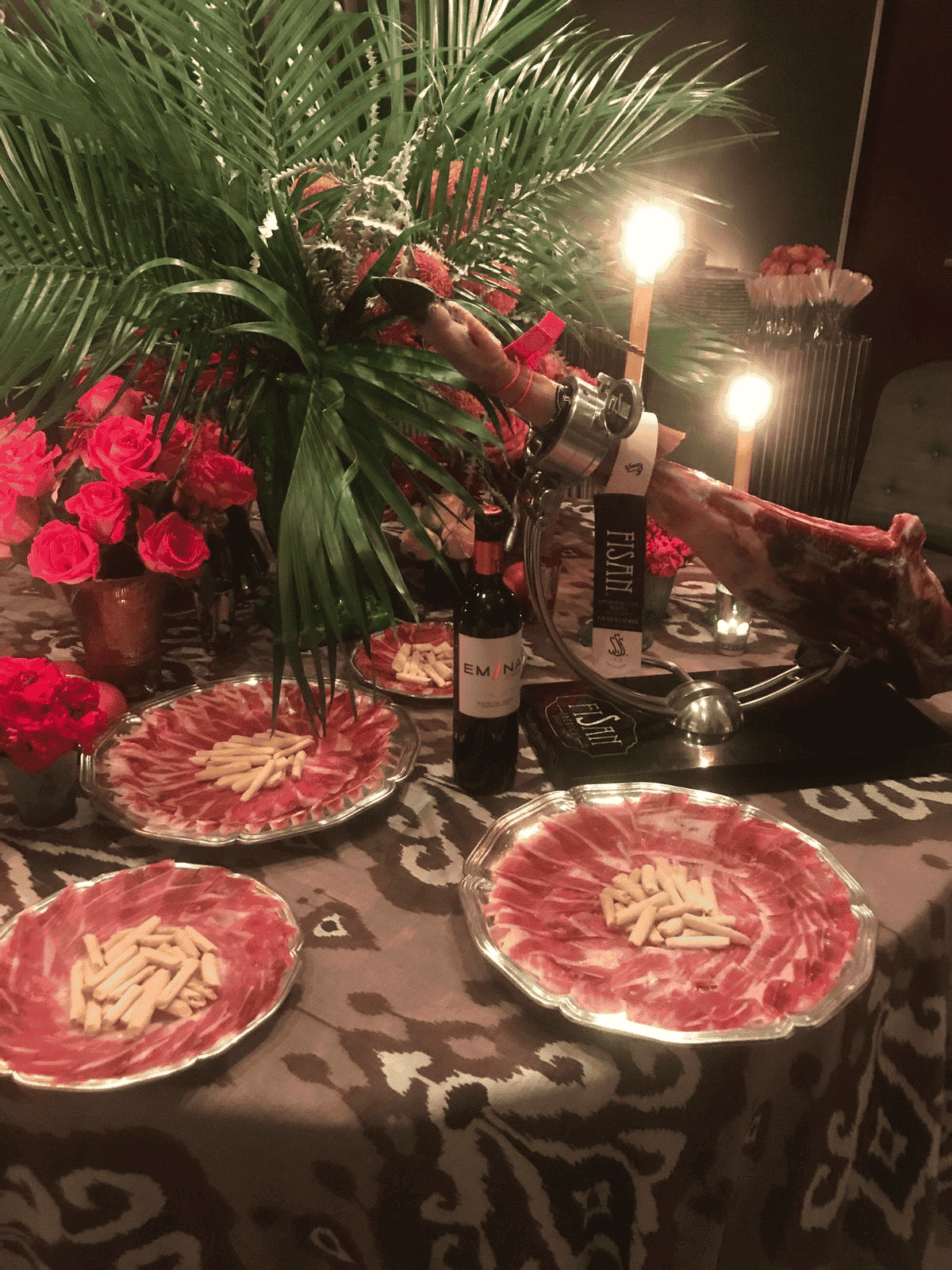 La revista Telva fue la anfitriona de este exclusivo evento. Sólo 50 personas se reunieron para ver las nuevas propuestas del modisto, entre ellas: Macarena Gómez, Eugenia Osborne, Carla Goyanes, María Pombo, Carmen Lomana, Ana Botella o Helen Svedin, compartieron una noche de moda y Jamón Ibérico FISAN, que al igual que las modelos, desfiló por los salones del lugar del evento.