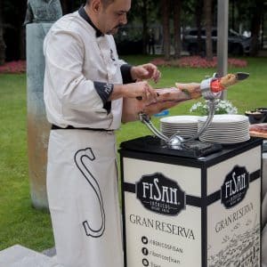 En el inigualable marco de la inauguración de esta exposición los asistentes pudieron disfrutar del exquisito Jamón de bellota Gran Reserva FISAN añada 2014, cortado por los maestros cortadores que estuvieron presentes en el evento, consiguiendo ese sabor tan rico del jamón recién cortado. Además FISAN aportó tablas con chorizo, salchichón y caña de lomo, que hicieron las delicias de los asistentes.