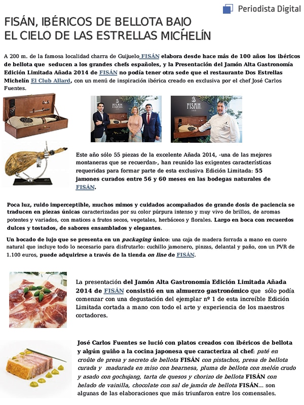 FISAN / Blog / Actualidad / Publicaciones / FISAN, Ibéricos de Bellota bajo el cielo de las estrellas Michelín