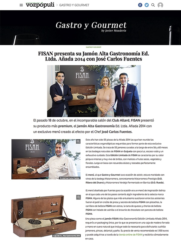 FISAN / Blog / Actualidad / Publicaciones / FISAN presenta su Jamón Alta Gastronomía Ed. Ltda. Añada 2014 con José Carlos Fuentes