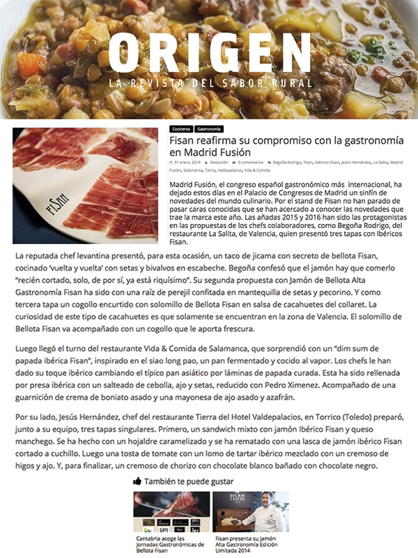 Fisan rea rma su compromiso con la gastronomía en Madrid Fusión 2019, el congreso español gastronómico más internacional, ha dejado estos días en el Palacio de Congresos de Madrid un sinfín de novedades del mundo culinario.