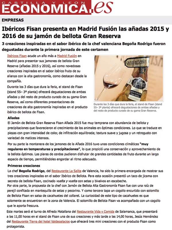 Ibéricos Fisan presenta en Madrid Fusión las añadas 2015 y 2016 de su jamón de bellota Gran Reserva.