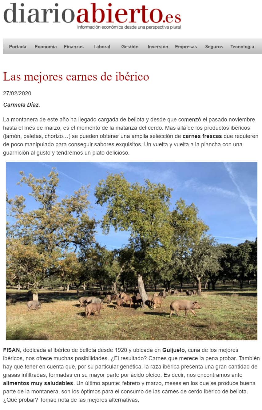 Diarioabierto.es se hace eco de ello y ofrece en su edición digital un amplio artículo sobre algunas de nuestras mejores carnes de cerdos de bellota ibéricos.