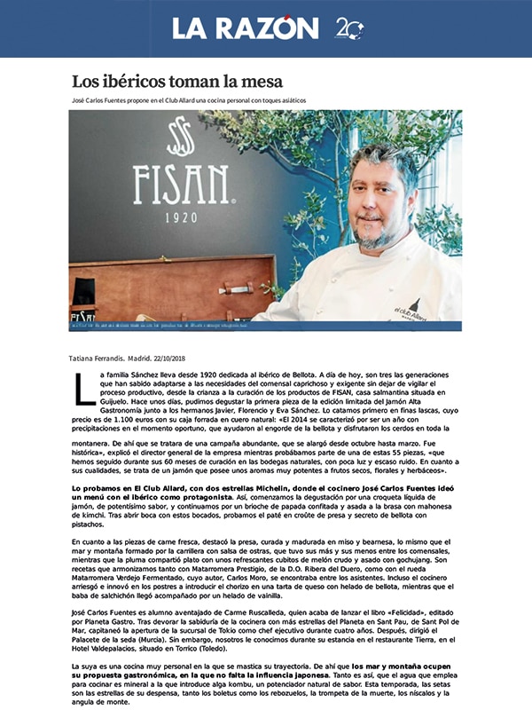 Los ibéricos toman la mesa. José Carlos Fuentes propone en el Club Allard una cocina personal con toques asiáticos.