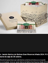 Así es el Jamón Ibérico de Bellota Gran Reserva Añada 2014 de FISAN, fresco, duradero, intenso y que rememora más de 50 meses de curación. Solamente las piezas más excepcionales se empaquetan en esta caja de sobres cortados a mano.