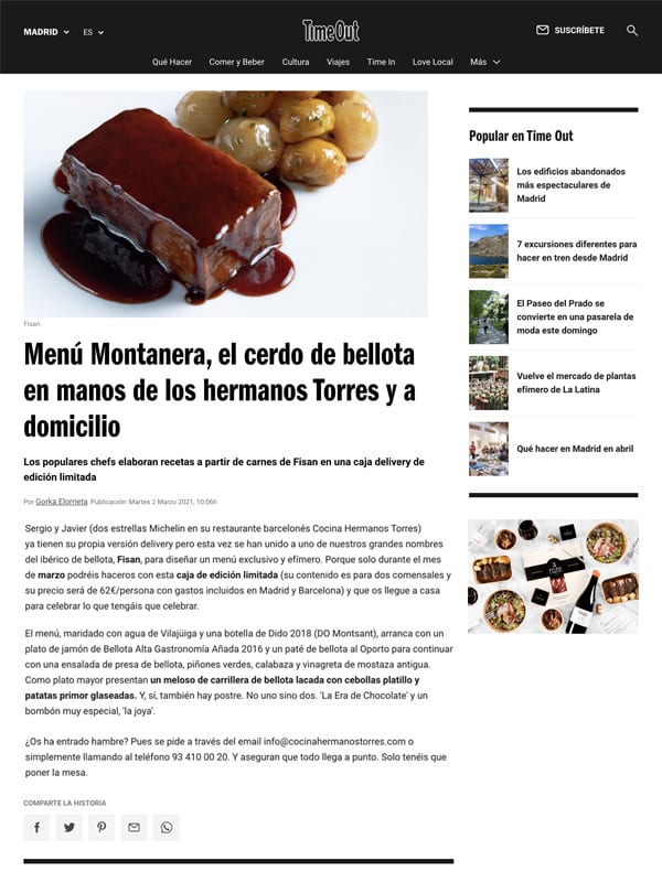 FISAN / Blog / Actualidad / Publicaciones / Menú Montanera, el cerdo de bellota en manos de los hermanos Torres y a domicilio
