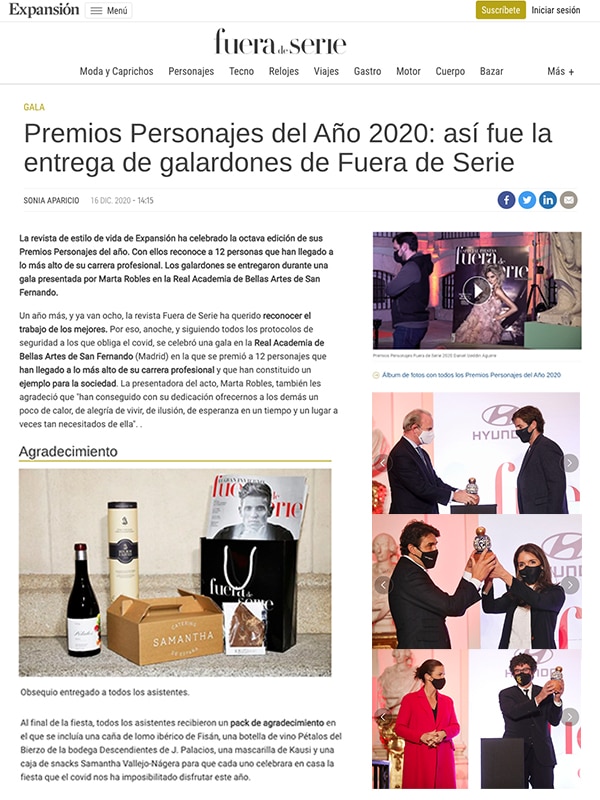 La revista de estilo de vida de Expansión ha celebrado la octava edición de sus Premios Personajes del año. Con ellos reconoce a 12 personas que han llegado a lo más alto de su carrera profesional. Los galardones se entregaron durante una gala presentada por Marta Robles en la Real Academia de Bellas Artes de San Fernando.