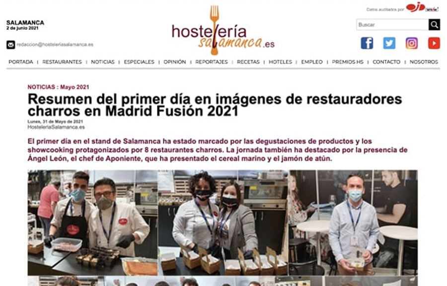 El primer día en el stand de Salamanca ha estado marcado por las degustaciones de productos y los showcooking protagonizados por 8 restaurantes charros. La jornada también ha destacado por la presencia de Ángel León, el chef de Aponiente, que ha presentado el cereal marino y el jamón de atún.