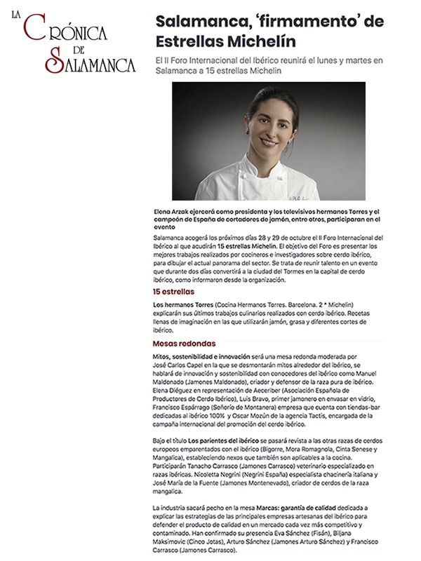 El II Foro Internacional del Ibérico reunirá el lunes y martes en Salamanca a 15 estrellas Michelin.