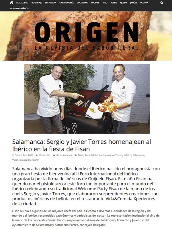 Salamanca ha vivido unos días donde el Ibérico ha sido el protagonista con una gran fiesta de bienvenida al II Foro Internacional del Ibérico organizada por la firma de ibéricos de Guijuelo Fisan. Este año Fisan ha querido dar el pistoletazo a este foro tan importante para el mundo del ibérico celebrando su tradicional Welcome Party Fisan de la mano de los chefs Sergio y Javier Torres, que elaboraron sorprendentes creaciones con productos ibéricos de bellota en el restaurante Vida&Comida Xperiences de la ciudad.