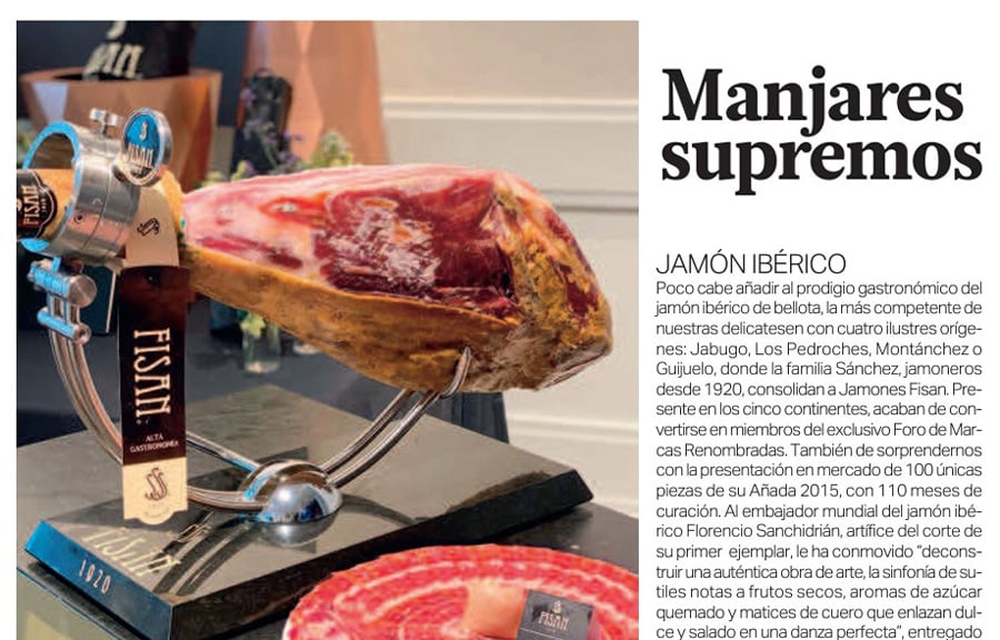 La revista STATUS de El Economista, dedica un apartado en su artículo sobre Manjares Supremos a hablar del especial y exclusivo Jamón de Bellota Ibérico FISAN.