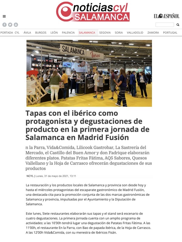 La restauración y los productos locales de Salamanca y provincia son desde hoy y hasta el miércoles protagonistas del escaparate gastronómico de Madrid Fusión, una destacada cita para la promoción conjunta de las dos marcas gastronómicas de Salamanca y provincia, impulsadas por el Ayuntamiento y la Diputación de Salamanca.