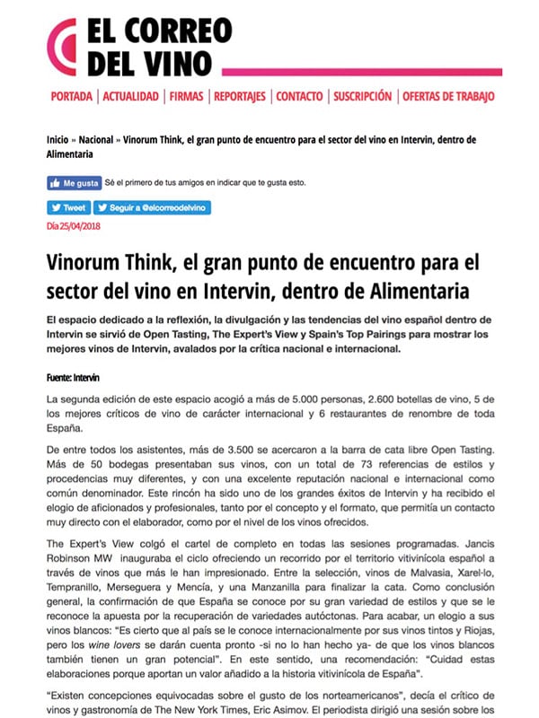El espacio dedicado a la reflexión, la divulgación y las tendencias del vino español dentro de Intervin se sirvió de Open Tasting, The Expert’s View y Spain’s Top Pairings para mostrar los mejores vinos de Intervin, avalados por la crítica nacional e internacional.