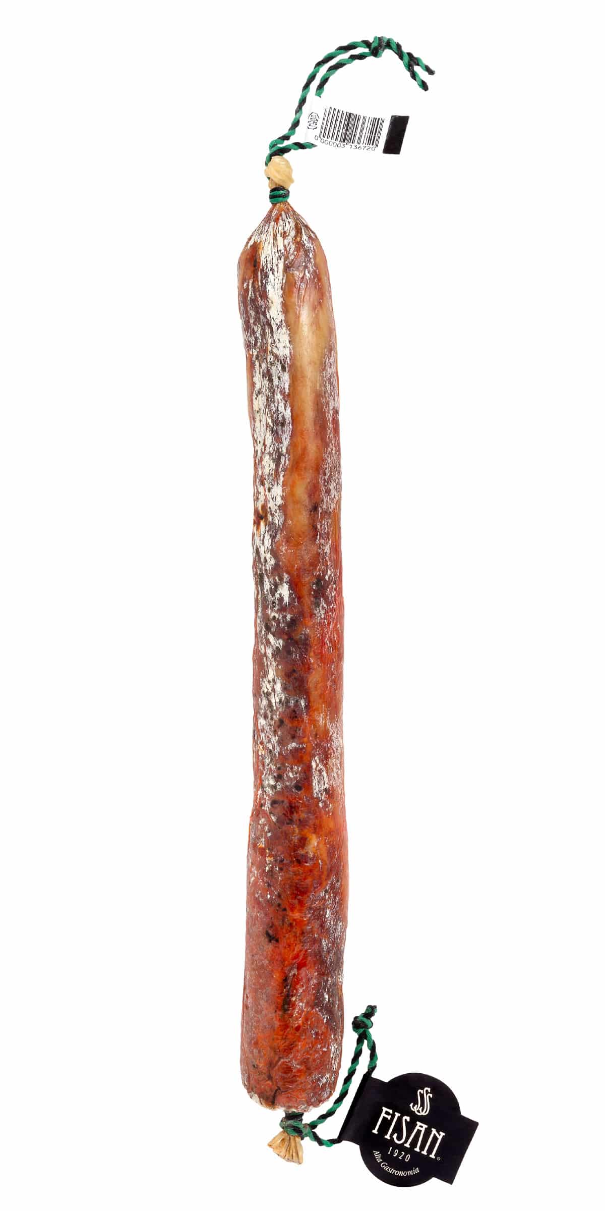 Farbe: Rosarotes iberisches Schweinefleisch Geschmack: Geschmeidig Aroma: Luftgetrocknet Aussehen: Einheitliche Wurst