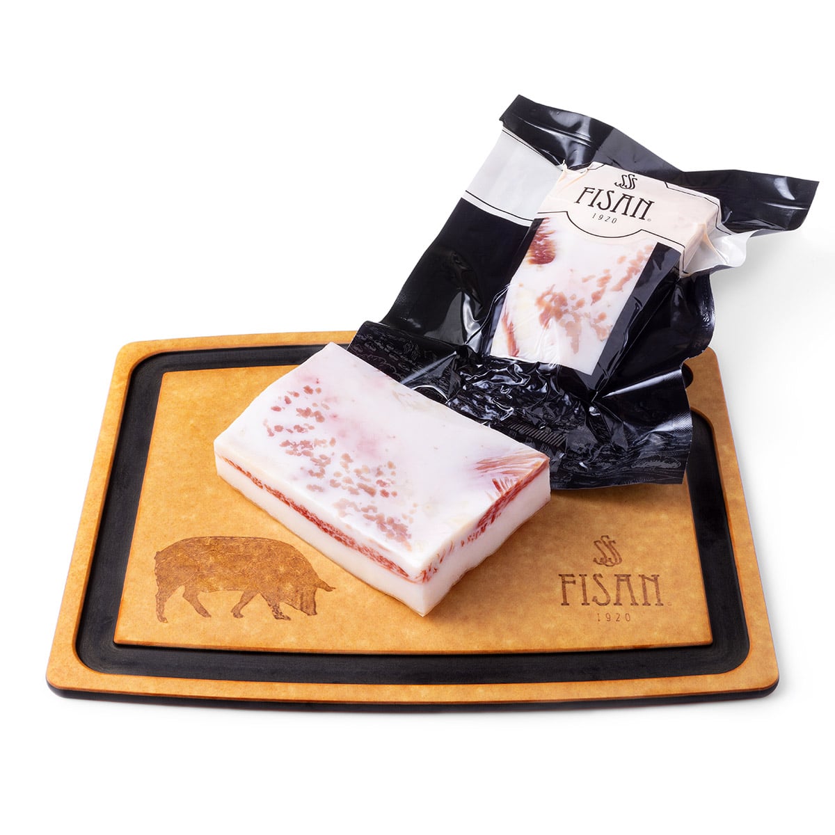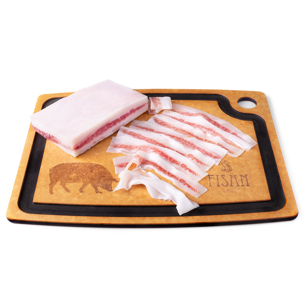 FISAN Iberico Bellota Pork Jowl (Schweinekinn), 100 % natürlich. Dieses dreieckige Fleischstück ist die spanische Zuschnitt-Variante des Schweinkinns und stammt aus den dünnen Backenmuskeln des iberischen Eichelschweins.