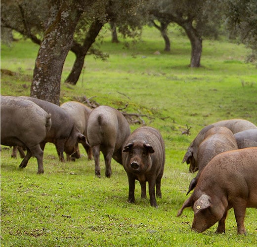 Por otra parte, no menos importante, nuestras dehesas ubicadas en Córdoba, Sevilla y Sur de Extremadura aseguran fruto en calidad y cantidad óptimas, para que la alimentación de nuestros cerdos ibéricos sea la idónea para la obtención del mejor jamón ibérico.