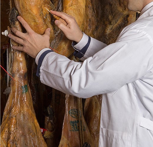 El control del proceso junto a la sabiduría y experiencia de nuestros maestros jamoneros nos permiten llegar a la excelencia en la producción de nuestros productos ibéricos.