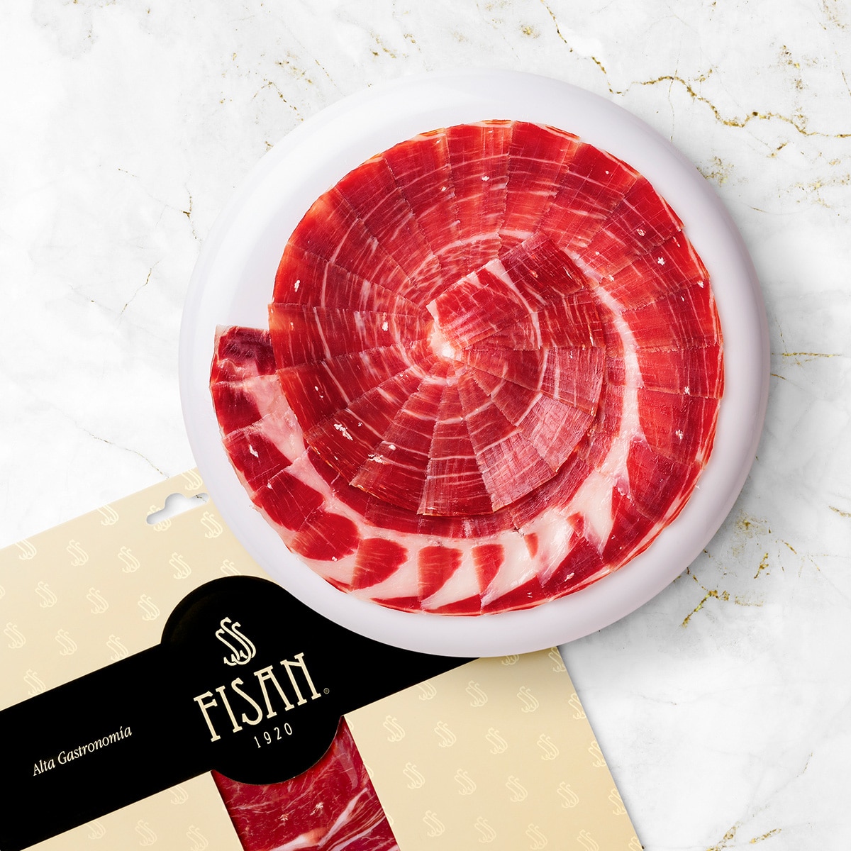 Una de la joyas de FISAN que perdura en la memoria de los paladares más exquisitos. Dulzura, sabor intenso, olor profundo, fresco y duradero son los extraordinarios matices que ofrece al paladar el Jamón de Bellota 100% Ibérico Alta Gastronomía. Su infiltración de grasa hace que cada pequeña loncha se derrita en la boca y su recuerdo perdure rememorando sus más de 50 meses de curación.