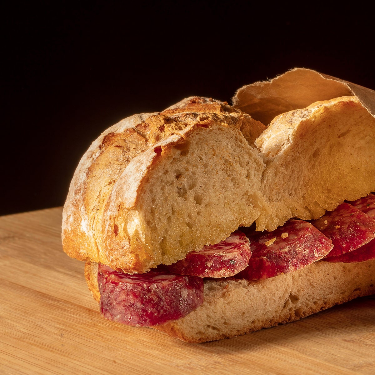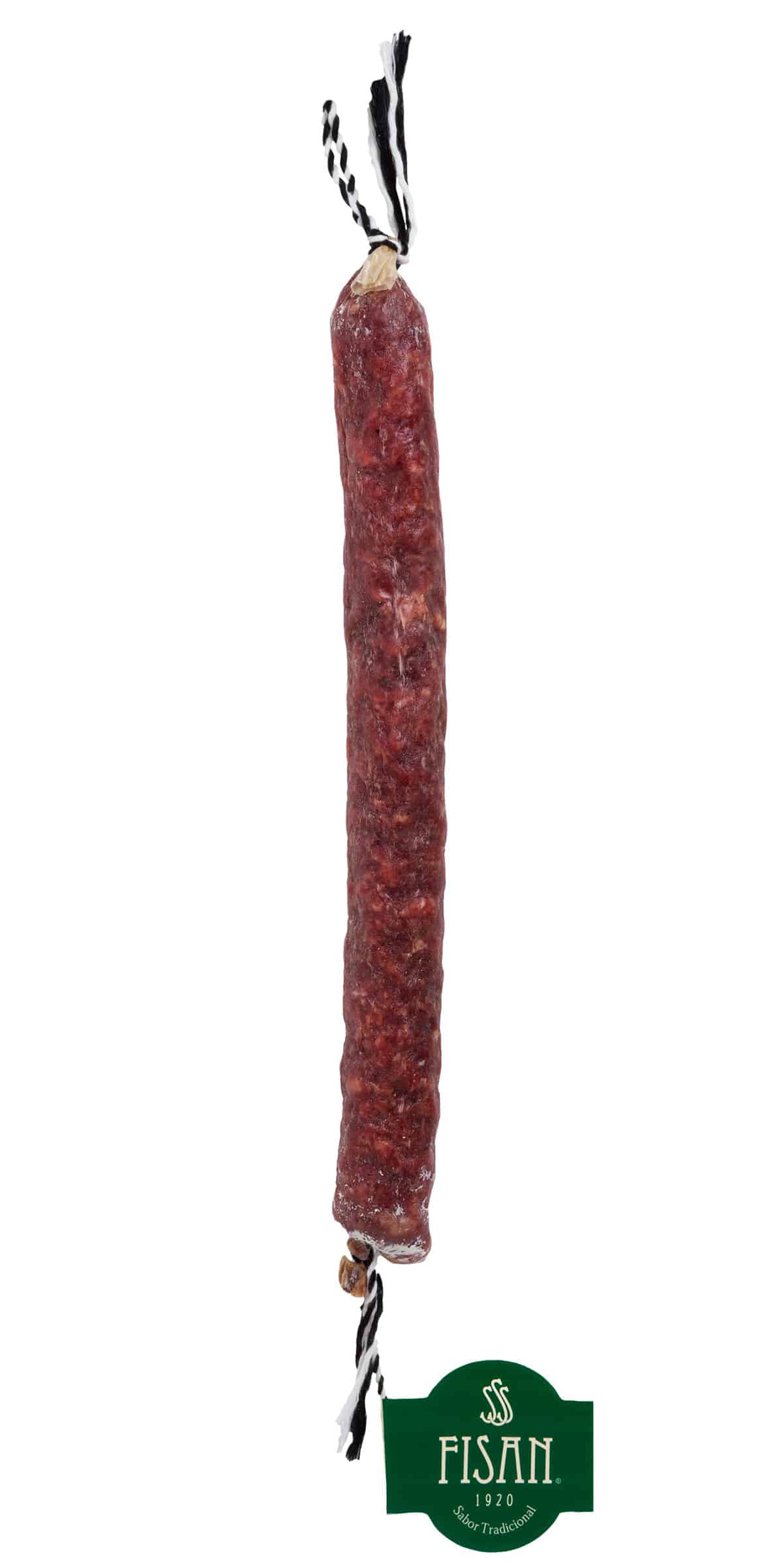 El Salchichón Vela de Bellota Ibérico 100% Natural FISAN se caracteriza por su suave sabor con un agradable recuerdo a pimienta y un aroma exquisito. Su curación se lleva a cabo en secaderos naturales lo que le brinda gran parte de su carácter.