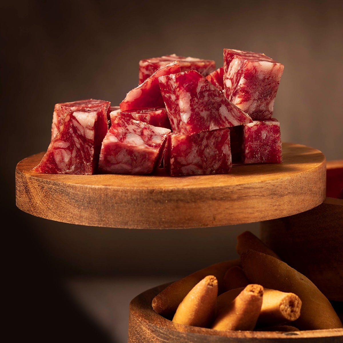 Cortado: Conservar en un lugar fresco y seco, se recomienda esperar unos minutos fuera del vacío para acondicionar y resaltar las características organolépticas del producto por efecto del envasado.